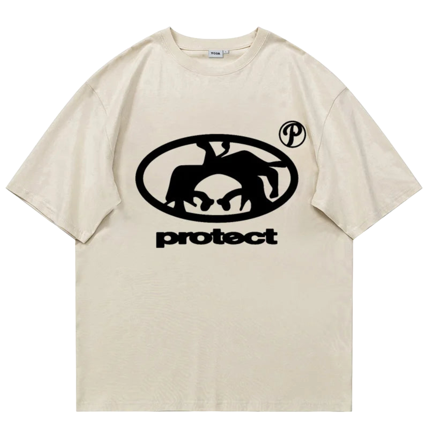 Clean, oversized white tee with a bold, black graphic emblem