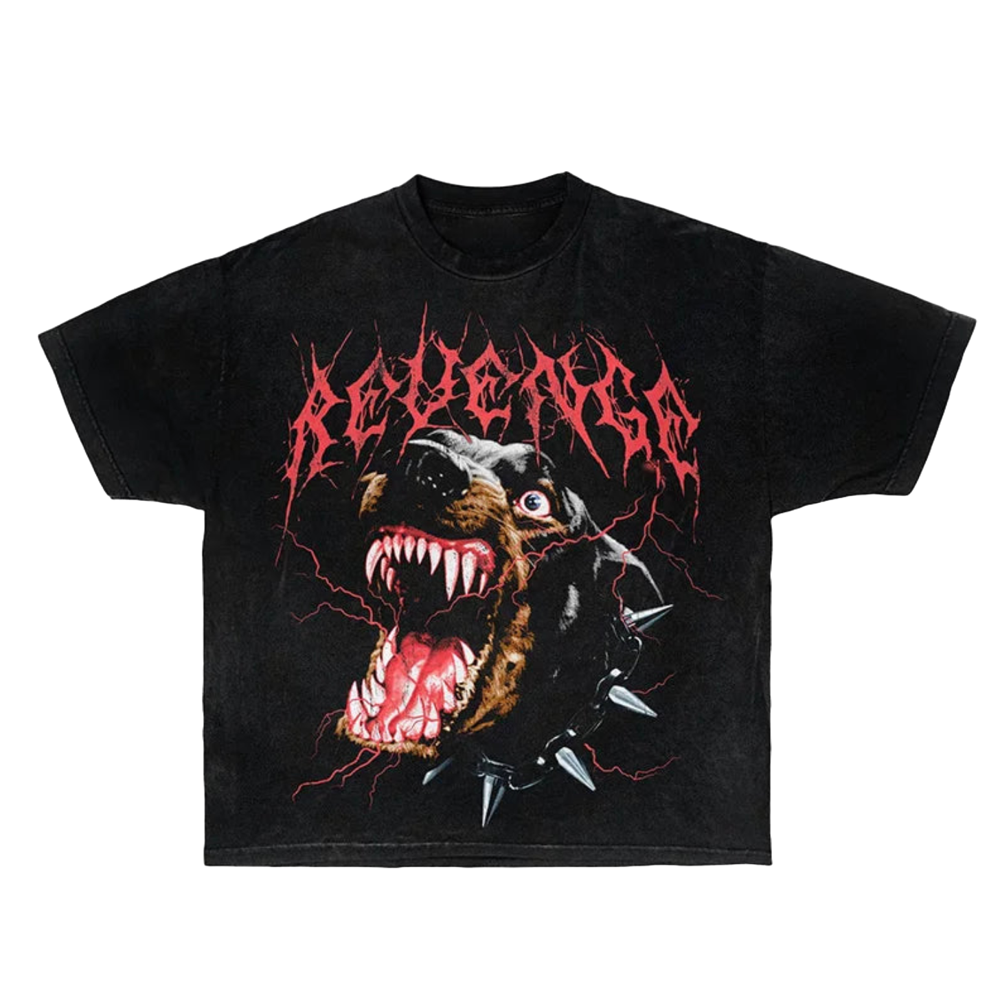Oversized black tee with an aggressive graphic of a snarling dog in electrifying colors